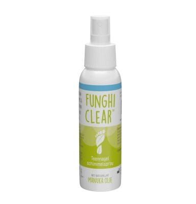Funghiclear is op basis van Manuka olie en creëert een milieu waarin schimmels niet kunnen leven. Een groot voordeel van FunghiClear in spray flacon is dat u ook de grootse bron van her-infectie gemakkelijk en goed kunt behandelen, namelijk de schoenen. Zo kunt u de voet-of nagelschimmel op uw voet(en) aanpakken en tevens zorgen dat u niet opnieuw besmet raakt!